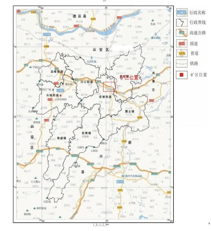 該礦區位于云浮市云城區北東76°方位,直距約20公里,行政區劃屬安塘街道及思勞鎮管轄。礦區面積約3.1759平方公里。礦區范圍內確定開采儲量29464.69萬立方米(約2.95億方),其中建筑用糜棱巖21921.43萬立方米(約2.2億方),磚用變質砂巖6997.19萬立方米,砂質高嶺土546.07萬立方米;綜合利用總量6818.41萬立方米,其中含砂全風化糜棱巖1931.76萬立方米,半風化糜棱巖3133.85萬立方米,殘積層1752.8萬立方米。
